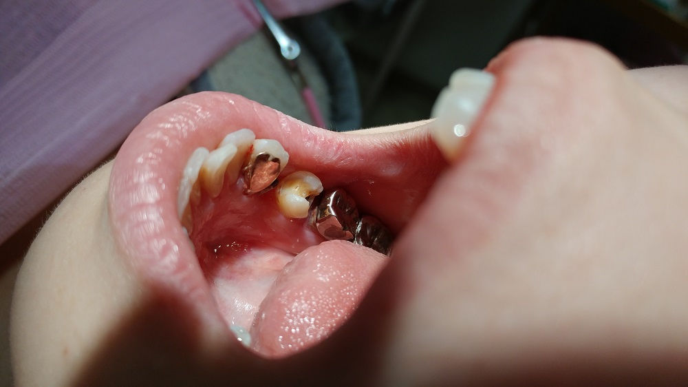 まず、奥歯の詰め物を全部除去して少し形を整える