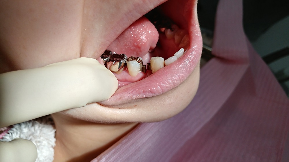 ブリッジという手は無難だが、抜歯した両隣の歯は神経が生きている しかも、この娘は少々麻酔が効きづらい