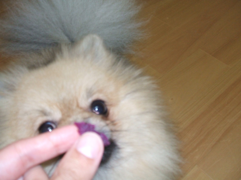 美味しそうに食べました。色は関係ないわけね、犬は。